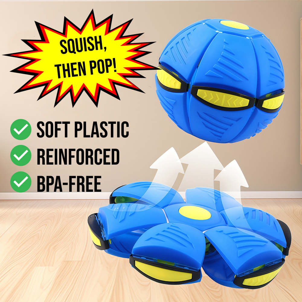 【Two Shapes in One】: With a gentle push, this magic ball instantly transforms into a magic flying saucer, then reverts to its original bouncy ball form within seconds for double the fun.